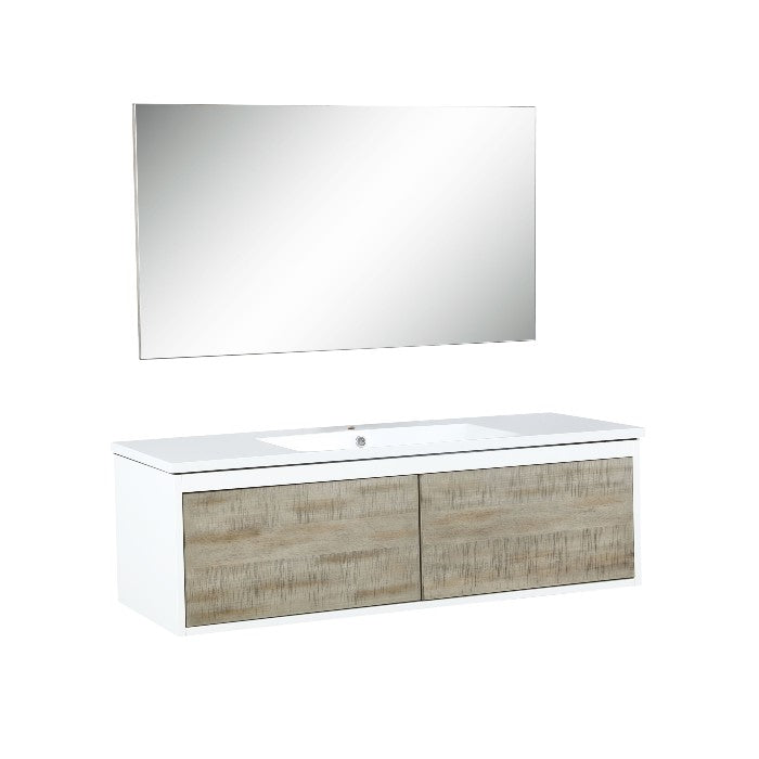 Lexora Scopi Modern 48" Rustic Acacia Bathroom Vanity w/ Acrylic Composite Top, and Frameless Mirror | LSC48SRAOSM43