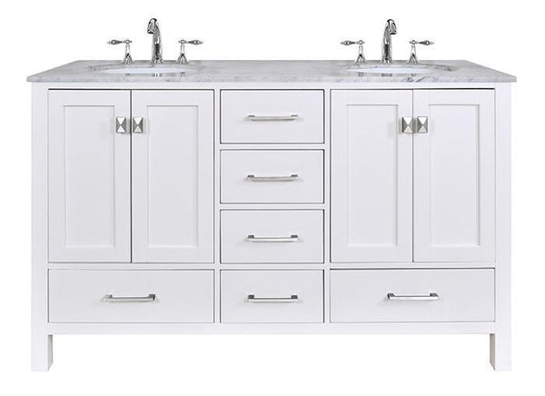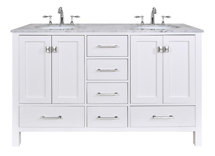 Stufurhome 60 inch Malibu Pure White Double Sink Bathroom Vanity