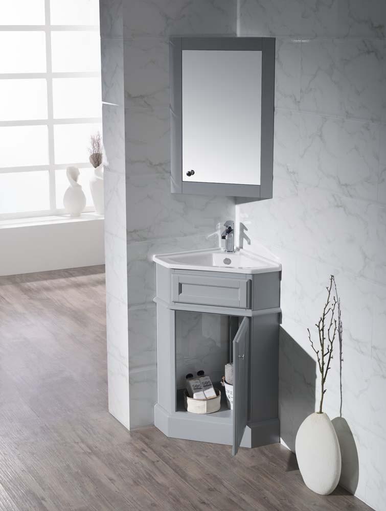 Stufurhome Hampton Grey 27 Inch Corner Bathroom Vanity with Medicine Cabinet