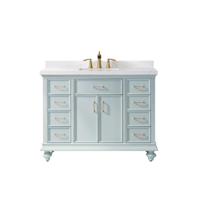 Charlotte 48" Vanity in Finnish Green with Carrara White Composite Stone Countertop Without Mirror by Vinnova
