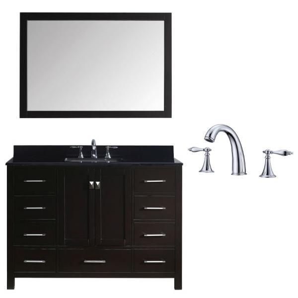 Caroline Ave 48" Espresso Freestanding Single Bathroom Vanity w/ Black Galaxy Granite Marble Top GS-50048 by Virtu USA