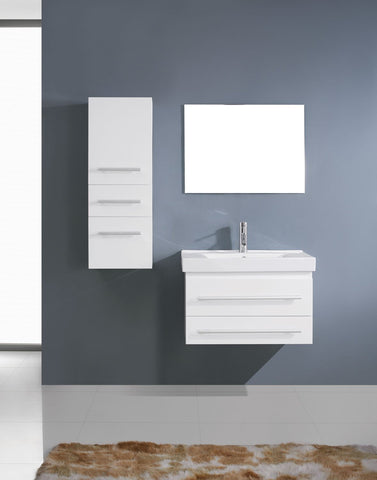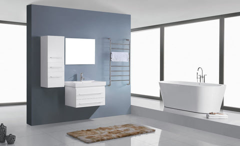 The Antonio bathroom vanity embraces the latest trend in luxury modern design. This wall mounted vanity is made from eco-friendly solid rubberwood and is constructed with two bottom drawers. A wall cabinet provides additional storage and compliments this attraction. At the pinnacle of the cabinet sits a fashionable, designer basin. This trendy Antonio vanity set comes complete with a mirror and a lifetime warranty faucet. Quality, storage, and exception value makes the Antonio desirable in any contemporary bathroom design. Virtu USA has taken the initiative in changing the vanity industry by adding soft closing doors and drawers to their entire product line. The premium soft-closing hardware not only increases the safety of the vanity, but also its lifetime reliability. Available color Espresso, Grey, White.