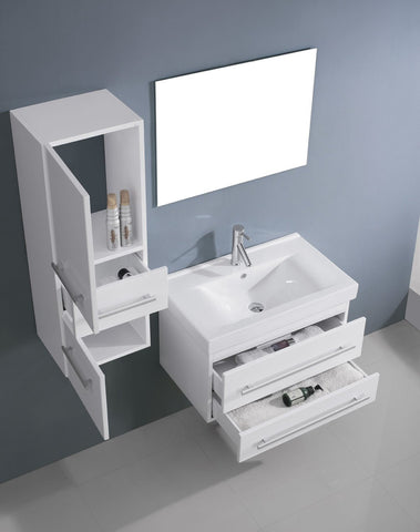 Details of the Virtu USA Antonio 30" Single Bathroom Vanity with White Ceramic Top and Square Sink