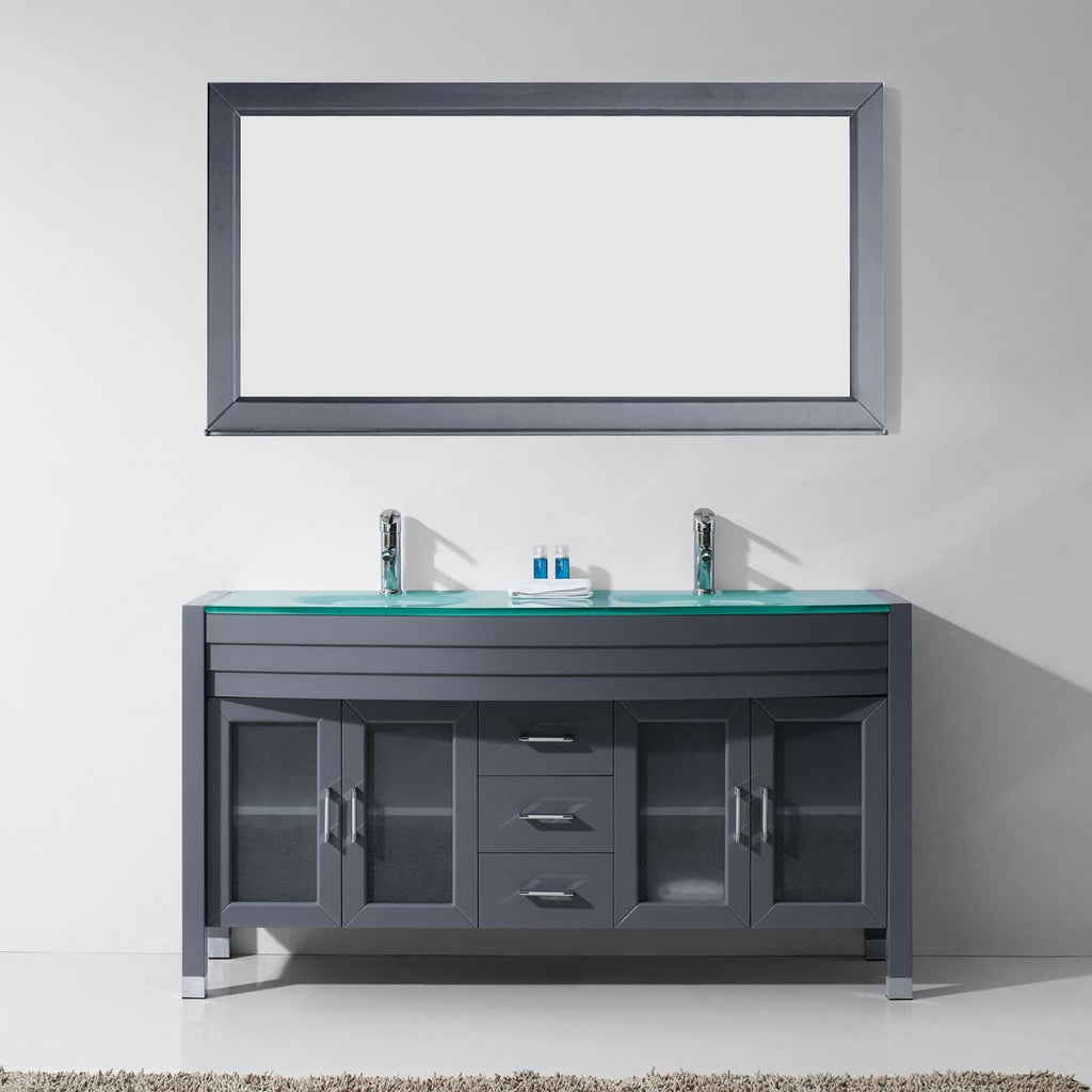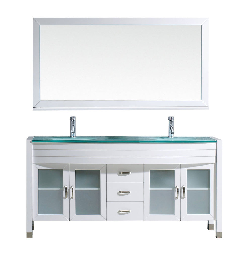 The Ava vanity offers modern clean-lined sophistication and classic warmth. The vanity is constructed from solid oak wood. Glass inserts add character and nice look to his and her cabinet doors. Never hear a door slam again with the included soft closing hinges. The vanity is finished with the contemporary rich Espresso color and is available with multiple countertop options. The vanity set comes complete with a matching mirror and equipped with eco-friendly, lifetime warranty faucets. The Ava vanity is a centerpiece to any bathroom design. Virtu USA has taken the initiative in changing the vanity industry by adding soft closing doors and drawers to their entire product line. The premium soft-closing hardware not only increases the safety of the vanity, but also its lifetime reliability. Available color Espresso, Grey, White