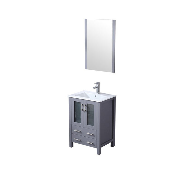 Lexora Volez 24 Inch Dark Grey Single Vanity, Integrated Top, White Integrated Square Sink and 22 Inch Mirror w/ Faucet | LV341824SBESM22F